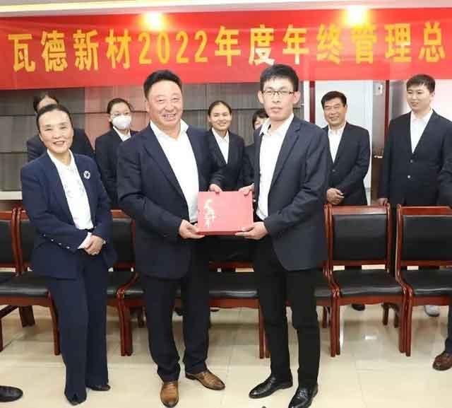 瓦德新材總經理 陳浩然 做瓦德新材2022年度管理工作總結報告。陳總分別概括了2022年度公司所做出的成績,回顧了2022年度所經所歷,言簡意賅的闡明了公司面臨的問題,詳細部署了公司2023年工作重點及工作目標。