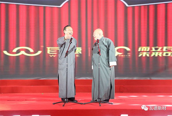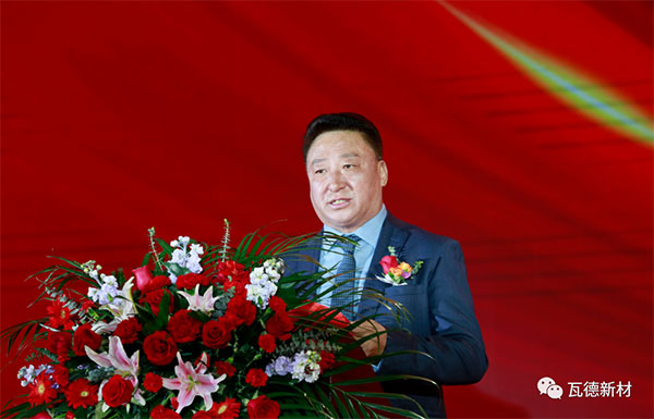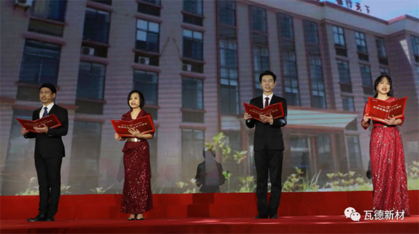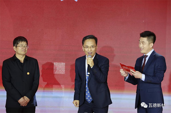 董事長謝富強首先講話,深情感謝各方賓朋。他簡要回顧30年風雨歷程。一個十幾人的小作坊,在艱苦條件下,依靠團結奮斗的精神,誠信經營的理念,不斷創新的勇氣,由小到大,由弱到強,由地面到門窗再到屋面,無論市場如何變遷,始終堅持不懈地打造自已品牌的堅強信念。將一支半手工作業的生產線打造成如今高端智能國際化的生產力量。實現了“瓦冠神州,德行天下”原初的奮斗目標,并將它確立為瓦德人躬身踐行的核心價值和企業永遠的座右銘。