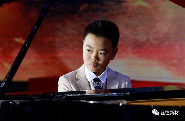 少年是祖國的未來,也是瓦德的未來。小小的鋼琴演奏者叫謝澤翰,他專門從武漢趕來參加慶祝瓦德30年文藝演出。謝澤瀚從3歲開始學習鋼琴演奏,曾獲得BOYA鋼琴藝術節湖北賽區兒童組二等獎;在國際青少年鋼琴大賽武漢分賽區獲二等獎。