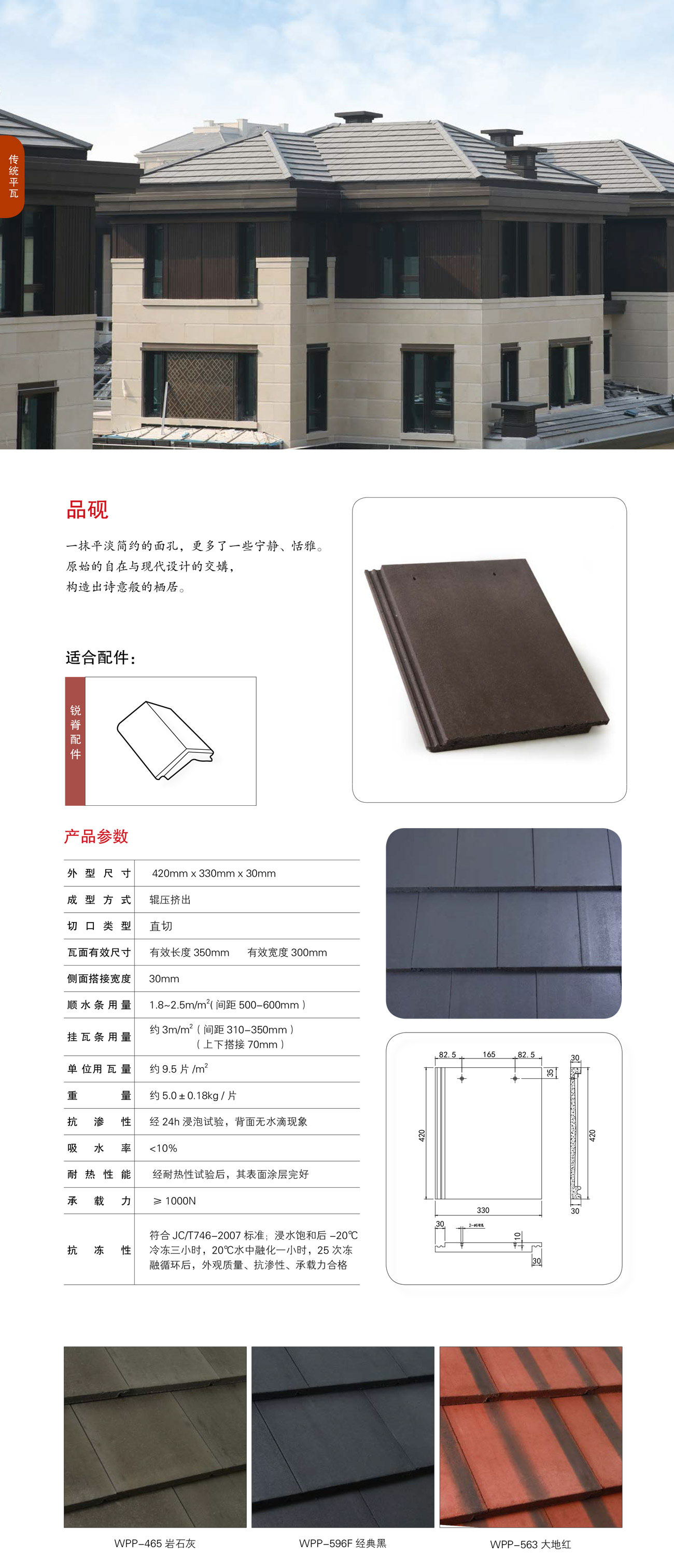 當前位置:網站首頁>>產品介紹>>瓦德彩色混凝土瓦>>瓦硯系列平瓦