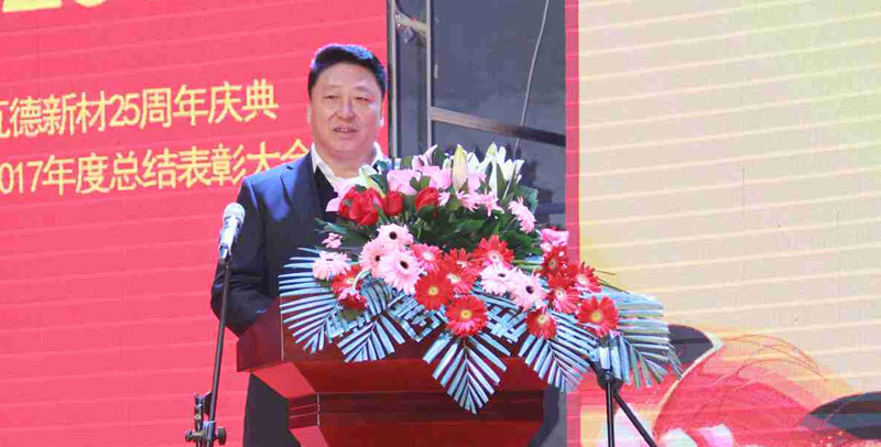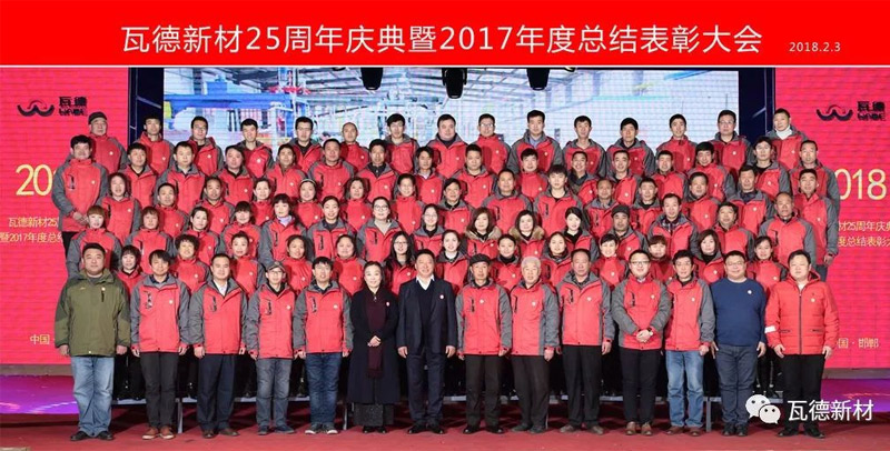 2月3日上午瓦德新材25周年慶典暨2017年度總結表彰大會于河北邯鄲五谷豐登大酒店隆重召開。此次會議的主題為“感恩 共享 發展”。集團董事長謝富強,總經理常金秀,中高層領導干部,武漢工廠、邯鄲工廠、安徽工廠職工代表,社會各界友人等近300人歡聚一堂, 共同分享收獲的喜悅,迎接全新的挑戰。