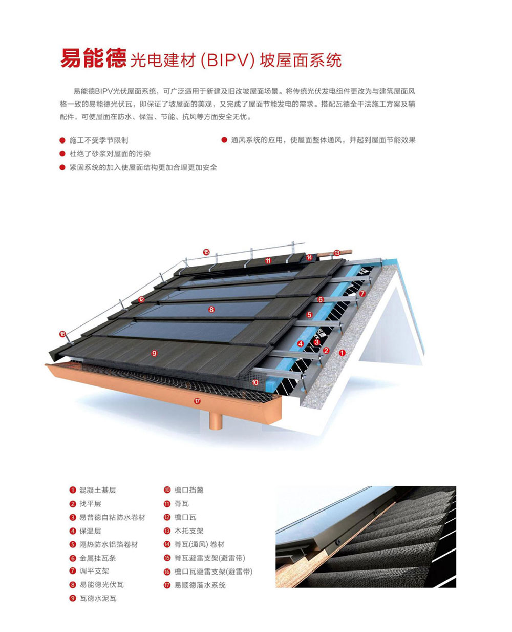 當(dāng)前位置:網(wǎng)站首頁(yè)>>產(chǎn)品介紹>>易能德BIPV光優(yōu)瓦坡屋面系統(tǒng)